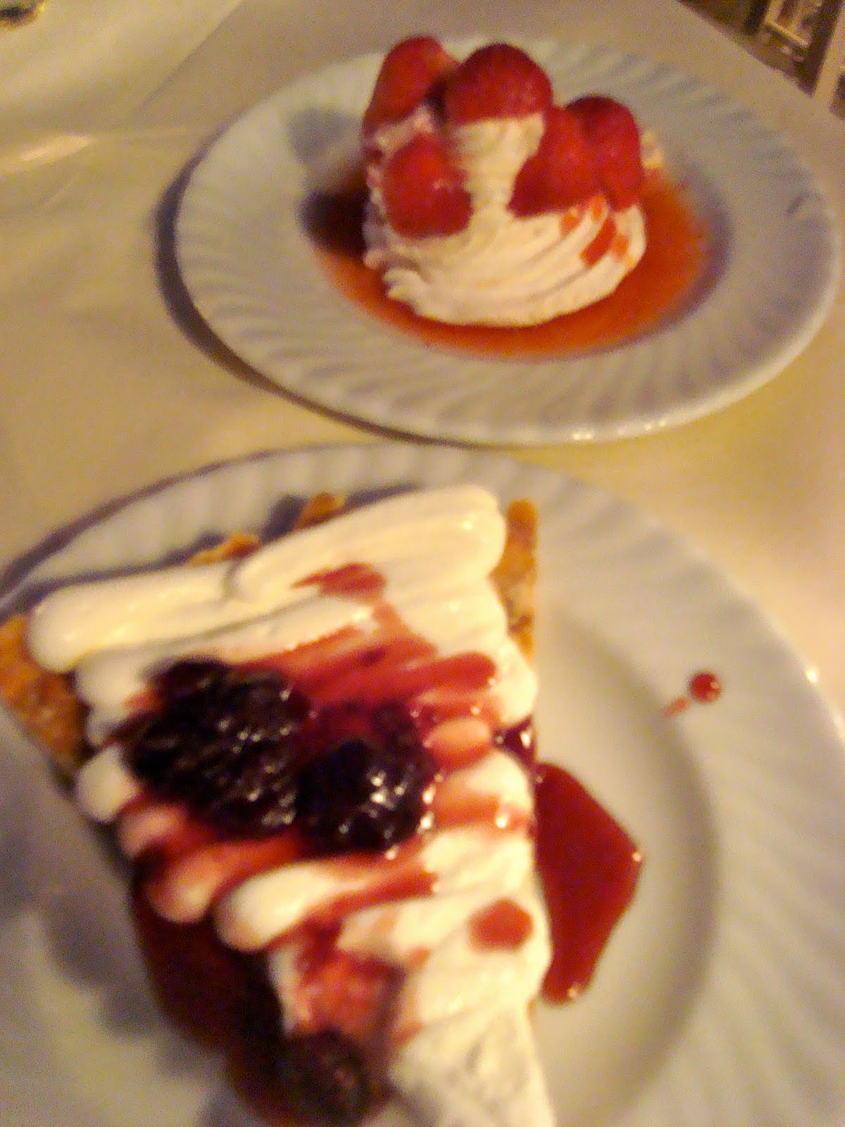 A strawberry and meringue, plus the cheese and sour cherry piece of heaven.