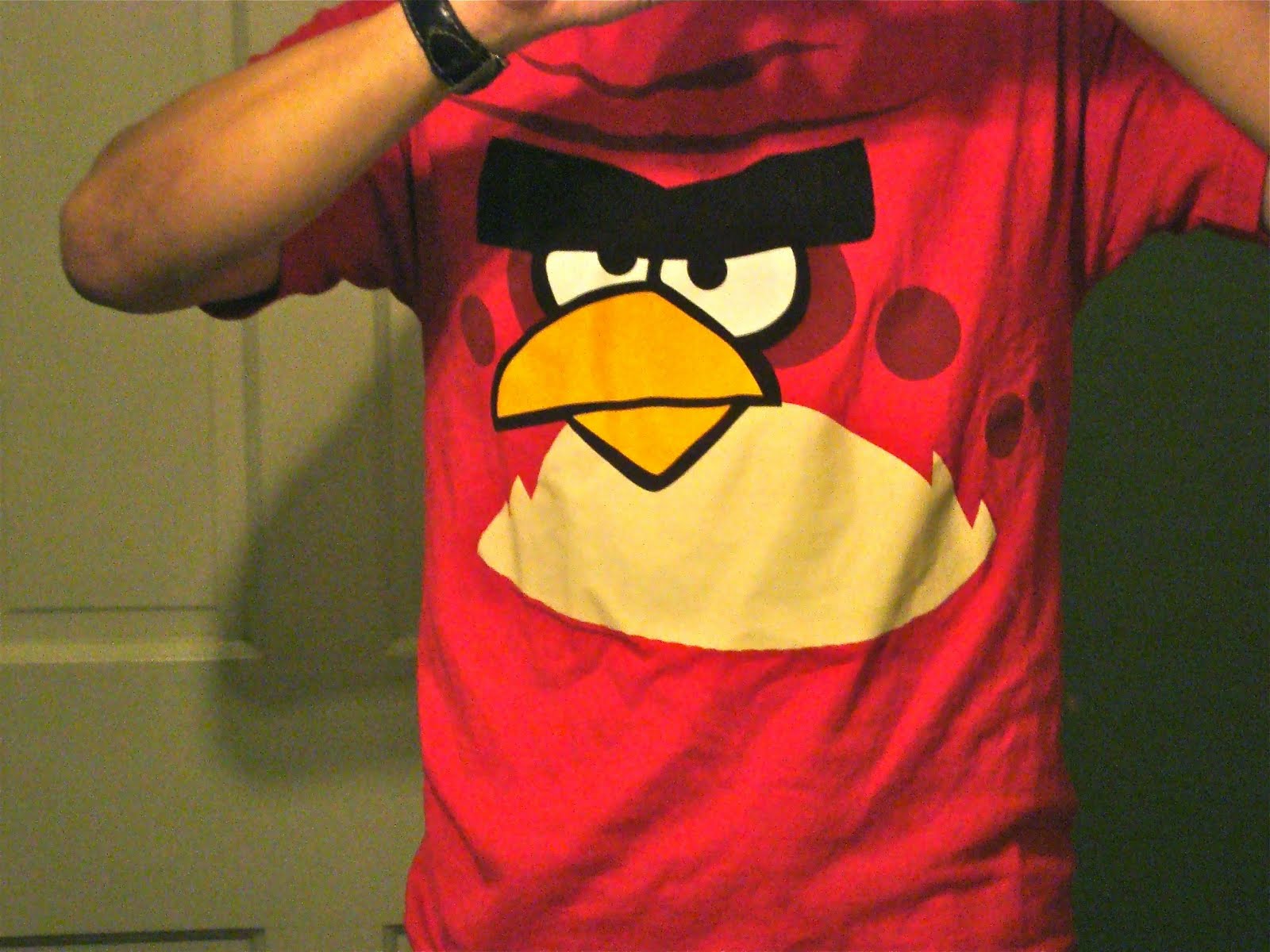 I was all set to write about my waning obsession with Angry Birds, had a lovely “End of the Affair” analogy, but then they had to go and make a new “Rio” version of it, complete with marmosets and blue macaws. Damn their ingenuity! So I’m back in, trying vainly for some balance. It doesn’t help when I get T-shirts like this from a fellow user: